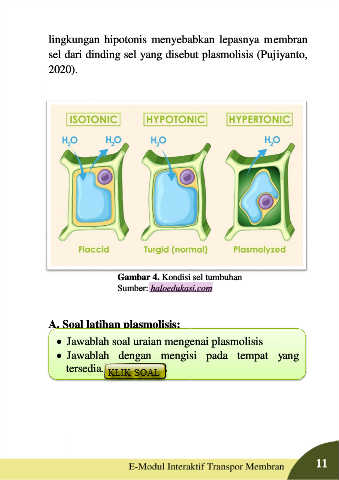 sel dari dinding sel yang disebut plasmolisis (Pujiyanto,