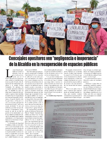 de fondo.Para la vicepresidenta del espacio público.“La respon- La Alcaldía niega inoperan- realizando la recuperación de los entre el municipio y los ciudada-
