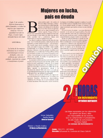 sostienen la producción agrícola y el cuidado de los ho- ras machistas, Bolivia seguirá en