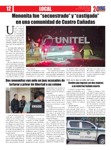 minar, por lo que fue trasladado jefes (de la comunidad menonita) vecina señala que la tortura se ha hecho una sola persona, se lo noche y en la mañana el obispo