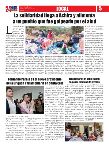 que están afectados. Apareció desde la capital cruceña. Daniel gente trabajando sin descanso, fue la Unión Juvenil Cruceñista. lidaridad. Esta semana será