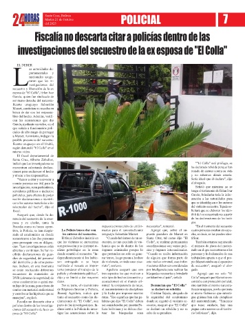 policías dentro de las investiga- parte de las investigaciones. In- ser consideradas por nuestra Po- cuestro, aseguró que "El Colla" que tener cuidado, hay una