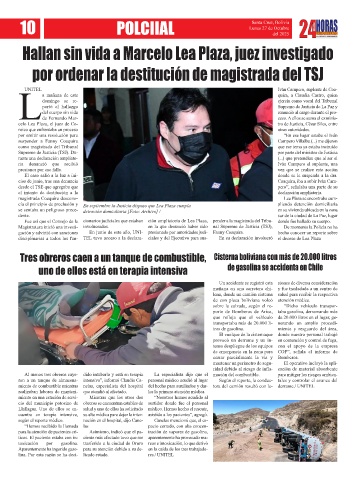 Fue así que el Consejo de la cionarios judiciales que estaban ción ampliatoria de Lea Plaza, pender a la magistrada del Tribu- donde fue hallado su cuerpo.