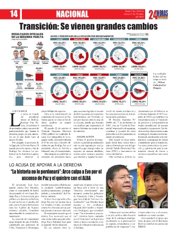 constituido por gobiernos de la segunda vuelta electoral. suyos de votar por la derecha en su ceguera, revanchismo e ina- Bolivia y ratificó su convicción