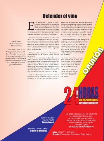 orgullo en Tarija. Castigarla Gravar el vino con un impuesto adicional no solo en- Lo normal es que el asunto no tenga