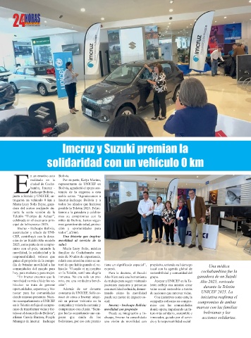hoy, para mañana y para mejor. en la Teletón, sentí una alegría Para la doctora, el Suzuki sostenibilidad y comunidad del cochabambina fue la