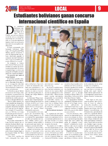 compartir esta noticia con Santa tegoría Online, en la que parti- las personas”, añadió el joven contribución boliviana a la di- por la ciencia y la tecnología.