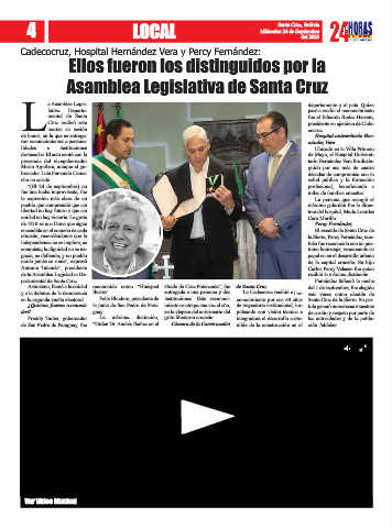 en la segunda vuelta electoral. Felix Eliodoro, presidente de instituciones. Este reconoci- conocimiento por sus 40 años Santa Cruz de la Sierra. Su par-
