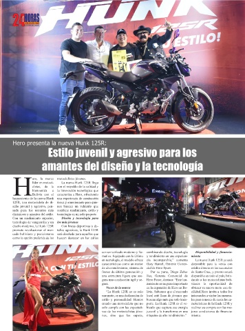 gura una conducción ágil y se- Hero Paxor, destaca: “Este lan- dando a los motociclistas boli-