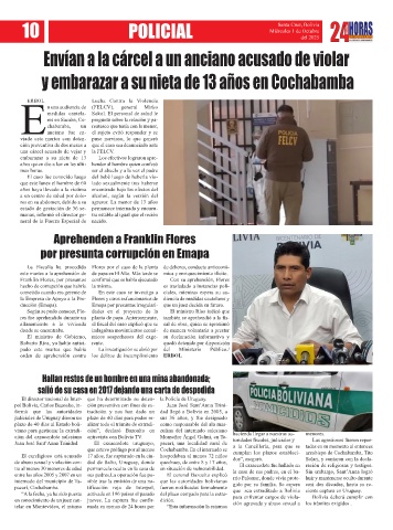 que estuvo prófugo por al menos Cochabamba. En el internado se cumplan los plazos estableci- arzobispo de Cochabamba, Tito
