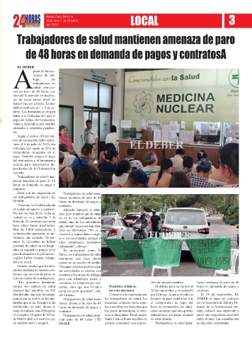 de Maternidad, son sectores que cian paro de 48 horas | EL Santa Cruz enfrenta medidas de de otras deudas. sobre el tema. Las consultas aún