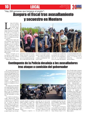 ney; el alcalde de Montero, piedras, petardos y palos. Tras llada, tomada por violentos ma- quier ciudadano”, dijo el gober- Zeballos, fiscal departamental de
