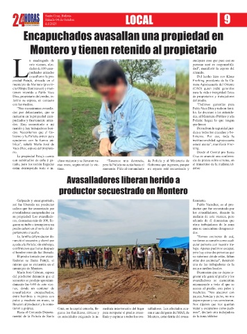 mental de la Policía de Santa ex autoridades exigiendo la in- llado y capturar a todos los ava- Montero, estar detrás del avasa- de la zona./eldeber