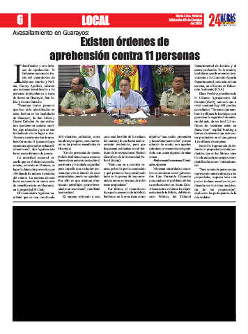 de avasallamiento en Guarayos, tuando patrullajes georreferen- estas propiedades”. avasallamientos en Santa Cruz. ducción con la misma maquina-