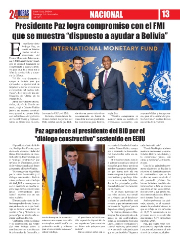 cos y generó un intenso lobby les como la CAF y el FMI. via abre un nuevo ciclo de re- según Paz. responsabilidad y transparen-
