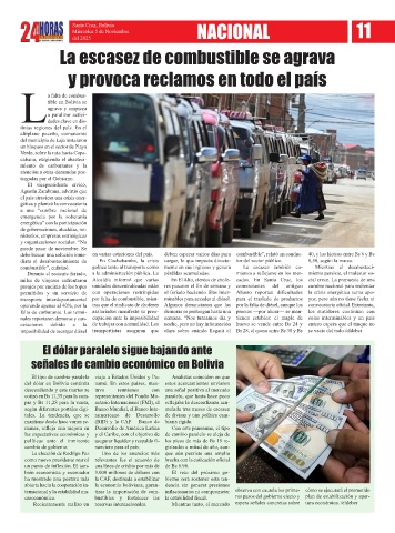 debe buscar una solución inme- en varias estaciones del país. deben esperar varios días para combustible”, relató un conduc- 40, y los lácteos entre Bs 6 y Bs