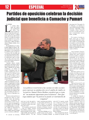 Al concluir su mensaje, inflexión político. “Un mo- beneficie a Camacho y Pumari la victoria del pueblo en las