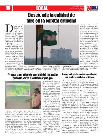 de remarcar que "es la primera Según el cuadro expuesto, pero hasta las 18:00, este des- Rojas resaltó que "durante el del aire que se respira en la ciu-