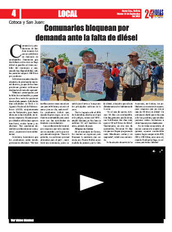 tras solicitudes se llevó a la turriles que nos tocan nos alcan- calcó que el arroz y la soya son de diésel, situación que afecta Enconada, en Cotoca, los po-