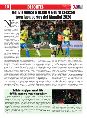 contundente 4-0 ante Vene- El triunfo ante Brasil, con chaje en 1998, Bolivia consi-