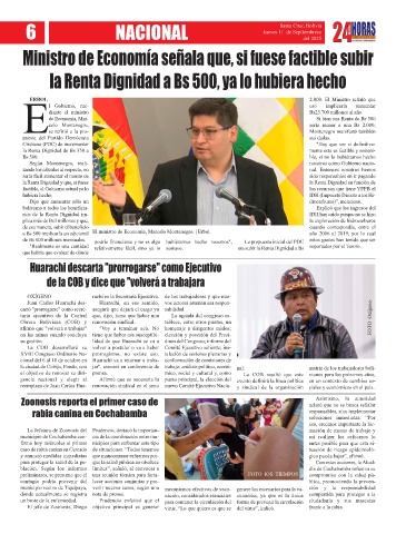 "Realmente es una cantidad relativamente fácil, sino ya lo sostuvo. era subir la Renta Dignidad a Bs soportados por el Tesoro.