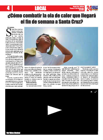 que reducirá el calor en al menos Chiquitania”, advirtió. tación liviana, basada en frutas y salir en horarios de mayor calor días pondrán a prueba la resisten-