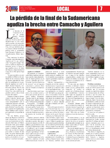 portivo, sino también en lo eco- También aseguró que la Fe- presidente de la Asamblea Le- Unidad de Proyectos Especiales entre Camacho y Aguilera,