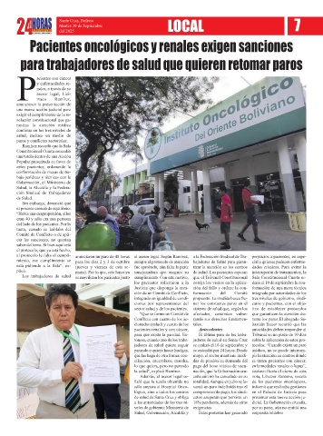 al protocolo le falta el cumpli- anunciaron un paro de 48 horas al asesor legal. Según Ramírez, a la Federación Sindical de Tra- perjuicios a pacientes, en espe-