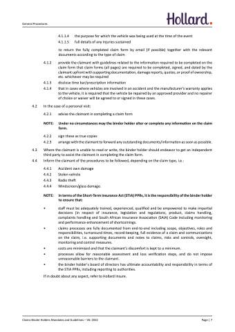 Claims Binder Holders Mandates and Guidelines – V6: 2022 Page | 7