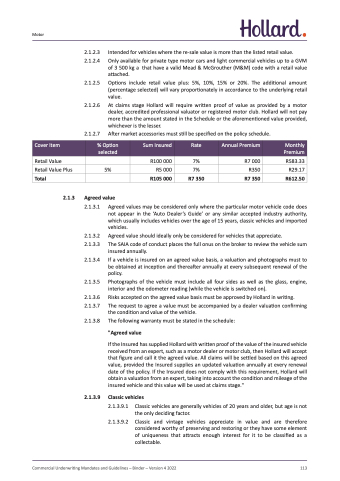 2.1.3.6 Risks accepted on the agreed value basis must be approved by Hollard in writing.
