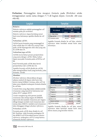 Perhatikan cell D5. Apabila formula disalin ke cell lain, relative