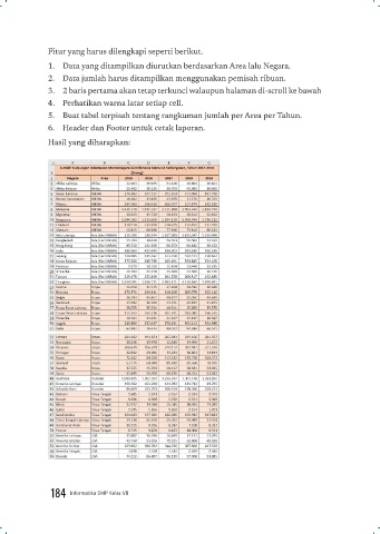 1. Data yang ditampilkan diurutkan berdasarkan Area lalu Negara.