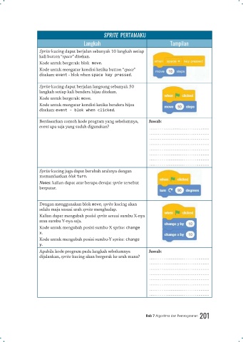 dijalankan, sprite kucing akan bergerak ke arah mana?