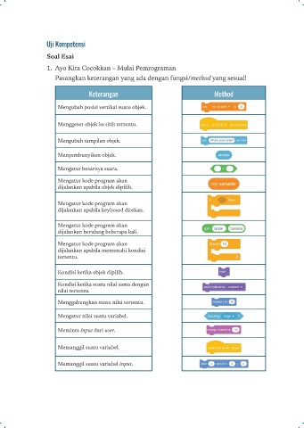 Pasangkan keterangan yang ada dengan fungsi/method yang sesuai!