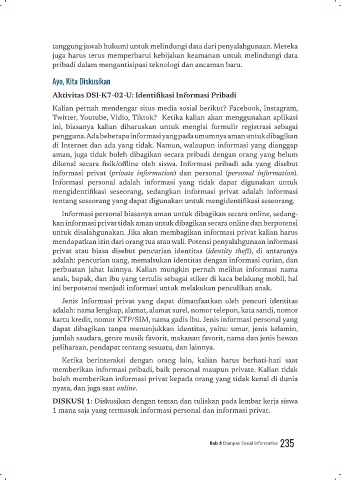 memberikan informasi pribadi, baik personal maupun private. Kalian tidak