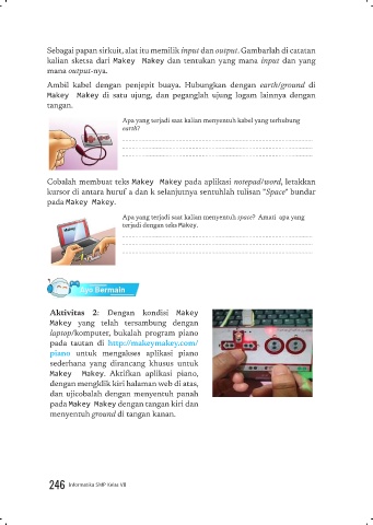 Cobalah membuat teks Makey Makey pada aplikasi notepad/word, letakkan