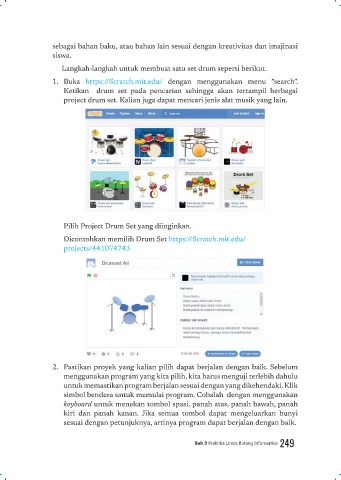 Dicontohkan memilih Drum Set https://Scratch.mit.edu/