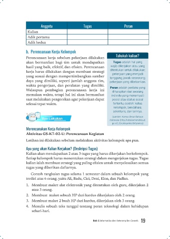 Setiap kelompok harus menentukan strategi dalam mengerjakan tugas. Tugas