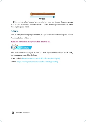 7 buah dan berukuran 3 cm sebanyak 7 buah. Kibo ingin memberikan kayu