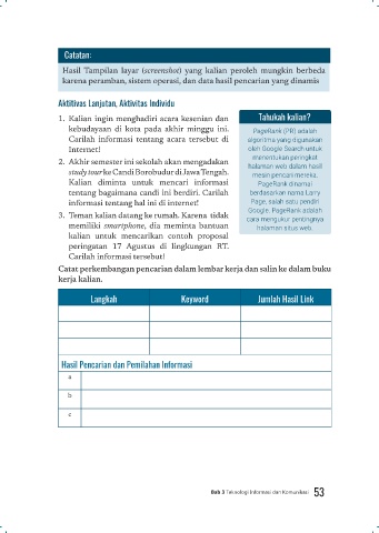 Catat perkembangan pencarian dalam lembar kerja dan salin ke dalam buku