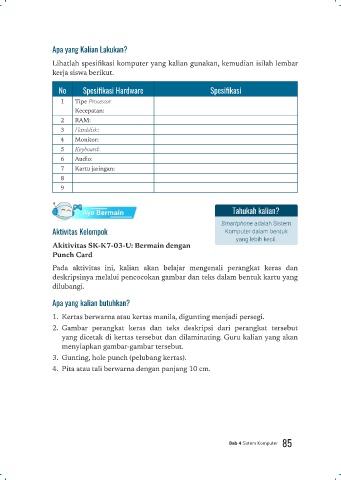 Lihatlah spesiàkasi komputer yang kalian gunakan, kemudian isilah lembar