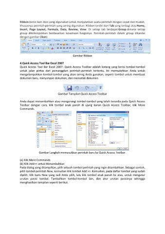 Ribbon berisi ikon-ikon yang digunakan untuk menjalankan suatu perintah dengan cepat dan mudah,