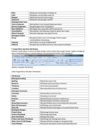 Tabel Fungsi Menu dan Ikon Tab Review.
