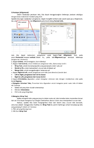 posisi Horizontal maupun vertical. Selain itu, pada tab Allignment juga terdapat beberapa