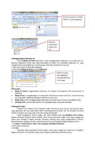 Merge & Center, meggabungkan beberapa sel sekaligus menengahkan teks yang berada di