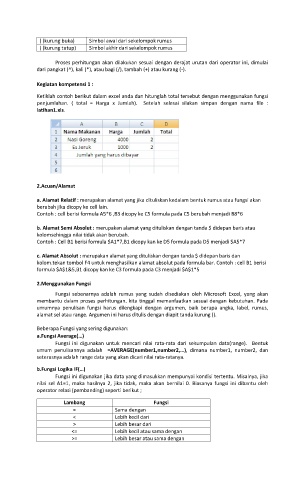 a. Alamat Relatif : merupakan alamat yang jika dituliskan kedalam bentuk rumus atau fungsi akan