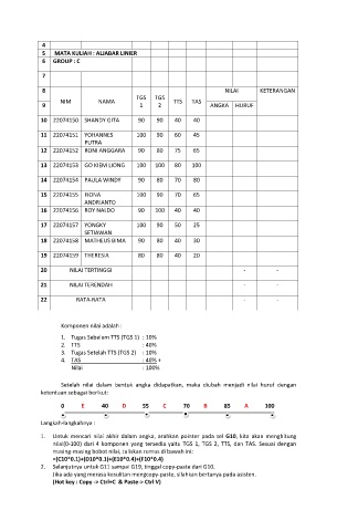 nilai(0-100) dari 4 komponen yang tersedia yaitu TGS 1, TGS 2, TTS, dan TAS. Sesuai dengan