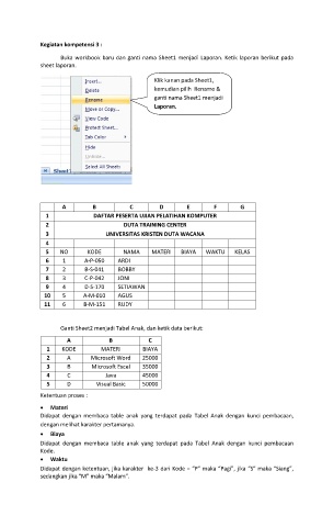 Buka workbook baru dan ganti nama Sheet1 menjadi Laporan. Ketik laporan berikut pada