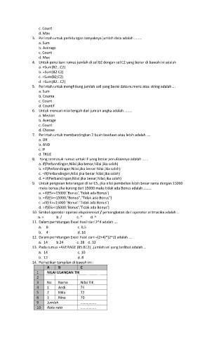 3. Perintah untuk perhitungan banyaknya jumlah data adalah ........