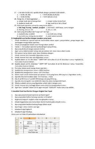 27. = ( A6+B6+C6+D6+E6) apabila ditulis dengan perintah SUM adalah…